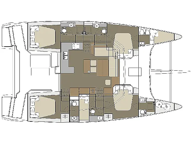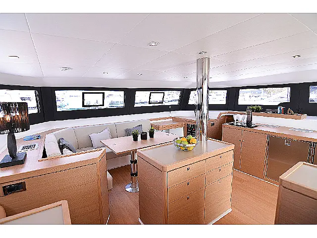 Klimaanlage, Bimini, Elektrische Toilette, Generator, Inverter, Solar-Panele, Sprayhood, Kühlschrank, Cockpit-Kissen, Kaffeemaschine, Außenbordmotor, Beiboot Kartenplotter, Autopilot