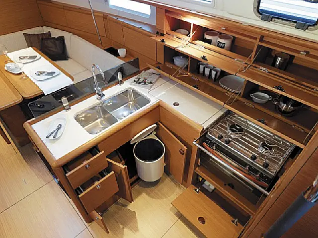 Kartenplotter im Cockpit, Autopilot Sprayhood, Bimini, Außenbordmotor, Beiboot, Elektrische Winch (Segel), Lautsprecher im Cockpit, Fäkalientank