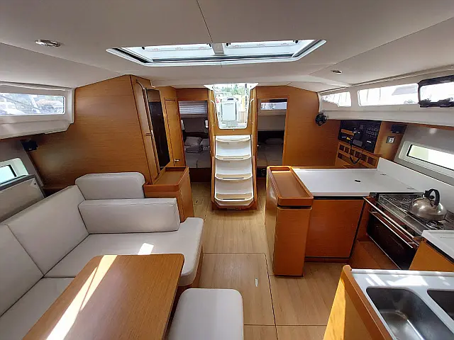 Autopilot, Bugstrahlruder, Kartenplotter im Cockpit Radio-CD Player Lautsprecher im Cockpit, Bimini, Badeplattform, Kühlschrank, Beiboot, Solar-Panele, Elektrische Toilette