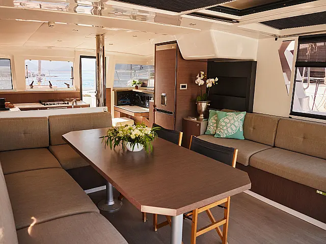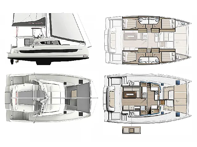 Autopilot, Kartenplotter im Cockpit Radio-CD Player Kühlschrank, Cockpit-Kissen, Bimini, Beiboot, Solar-Panele, Generator, Klimaanlage, Inverter, Wassermacher