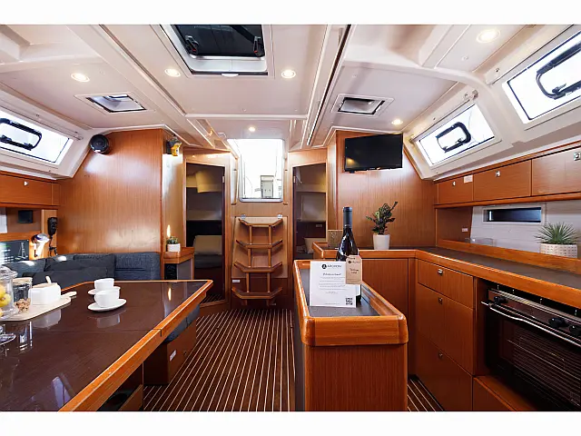 Klimaanlage, Elektrische Toilette, Solar-Panele, Bimini, Teak Cockpit, Cockpit-Kissen, Sprayhood, Lautsprecher im Cockpit, Beiboot, Außenbordmotor, Kaffeemaschine, Kühlschrank Kartenplotter im Cockpit, Autopilot, Bugstrahlruder Schnorchelausrüstung