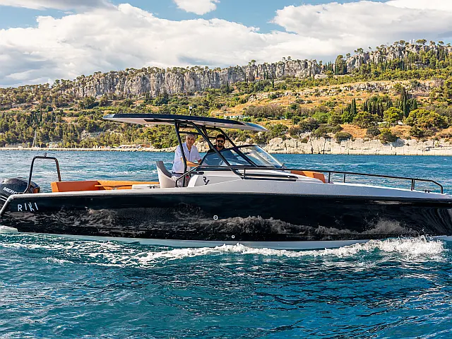 RYCK 280 is an exciting new range of luxury sports day boats that combine all the versatility of a RIB with high-quality appointments usually found on luxury tenders. It is a freshly launched line of fast, walk-around centre-console boats capable of adapting to a wide variety of uses: family entertainer, fast tender, adventure sports day boat or premium fishing platform.When you are safely tucked-up at a secluded anchorage, courtesy of an electric windlass, the RYCK 280 seamlessly switches into entertaining mode with cockpit lounge, sun pads, and dining table. A generous sized cabin downstairs with a separate bathroom ensures a comfortable overnight stay or weekend getaway. The RYCK 280?s dimensions of length overall of 9.51 metres or just over 31 feet, a 2.81 metre beam, and draft of 0.52 metres means it can be easily moored off a small private jetty or stored on a hard stand and is trailerable if required.. Although our base is in Trogir, we can deliver boats to client's destination base all over the coast and on islands: Brač (Milna, Sutivan, Supetar), Šolta (Maslinica, Nečujam), Hvar (Hvar, Starigrad), Korčula, Mljet, Vis (Vis, Komiža), Split, Šibenik, Zadar etc..