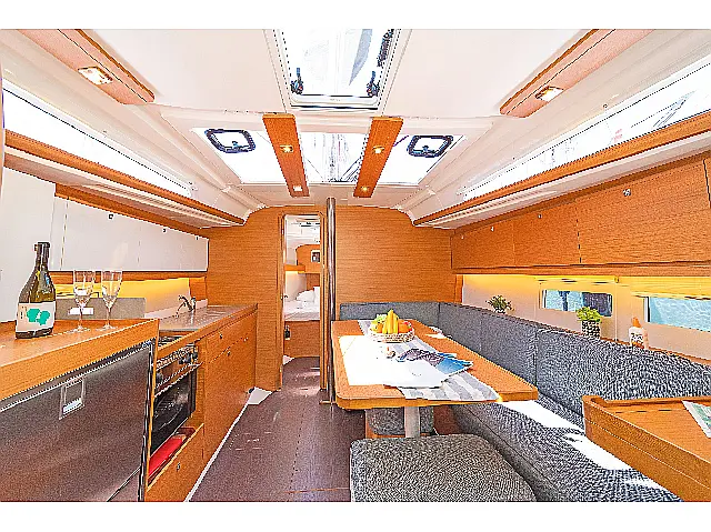 Lazy jack, Lazy bag Kaffeemaschine, Fäkalientank, Bimini, Elektrische Toilette, Kühlschrank, Sprayhood, Beiboot, Cockpit-Kissen, Solar-Panele, Lautsprecher im Cockpit Kartenplotter im Cockpit, Bugstrahlruder, Kartenplotter, Autopilot Schnorchelausrüstung