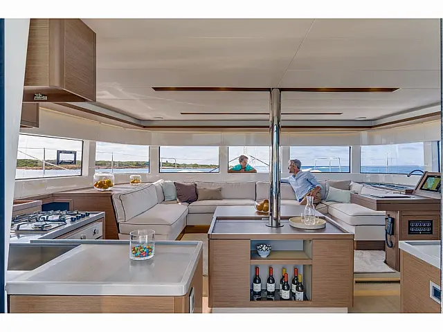 Klimaanlage, Eismaschine, Flybridge, Wassermacher, Generator, Beiboot, Inverter, Elektrische Winch (Segel), Außenbordmotor, Elektrische Toilette, Kühlschrank Autopilot, Bugstrahlruder TV Lazy bag