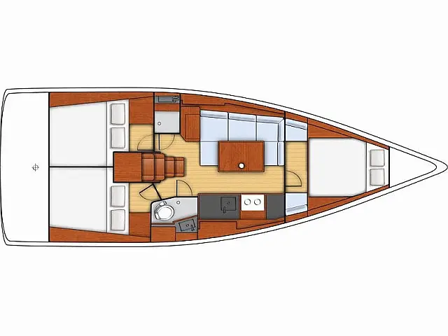 Bimini, Teak Cockpit, Kühlschrank, Sprayhood, Heizung, Inverter, Außenbordmotor, Beiboot Autopilot, Bugstrahlruder, Kartenplotter im Cockpit Radio-CD Player, TV
