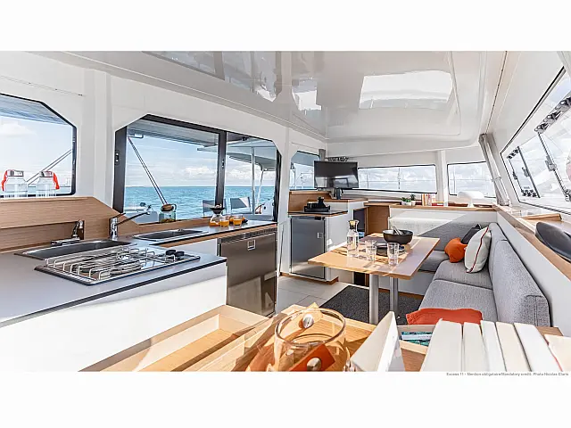 Beiboot, Außenbordmotor, Kühlschrank, Cockpit-Kissen, Fäkalientank, Solar-Panele, Wi-Fi und Internet, Elektrische Winch (Segel) Kartenplotter Schnorchelausrüstung Reelingsnetz Gennaker, Lazy jack