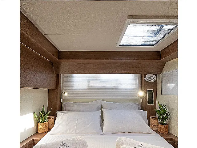 Stand up paddle, Schnorchelausrüstung, Radio-CD Player, TV Beiboot, Außenbordmotor, Cockpit-Kissen, Klimaanlage, Kaffeemaschine, Kühlschrank, Elektrische Toilette, Elektrische Winch (Segel), Generator, Hydraulische Gangway, Eismaschine, Wi-Fi und Internet, Inverter, Wassermacher Radar, Kartenplotter, Bugstrahlruder, Autopilot