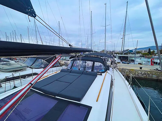 Klimaanlage, Hydraulische Gangway, Elektrische Toilette, Solar-Panele, Bimini, Teak Cockpit, Cockpit-Kissen, Sprayhood, Lautsprecher im Cockpit, Beiboot, Außenbordmotor, Kühlschrank Kartenplotter im Cockpit, Autopilot, Bugstrahlruder