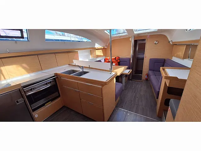 Bimini, Swimming platform, Sprayhood, Teak Cockpit, Dinghy, Outboard engine, Cockpit cushions, Refrigerator, Cockpit speakers, Wi-Fi & Internet, Solar Panels, Heating Bow thruster, Outside Steering Position, Chart plotter in cockpit, Autopilot