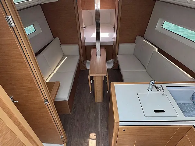 Refrigerator, Electric winches, Cockpit cushions, Bimini, Sprayhood, Dinghy, Swimming platform, Holding tank, Outboard engine, Heating, Cockpit speakers, Inverter Bow thruster Lazy bag Stand up paddle