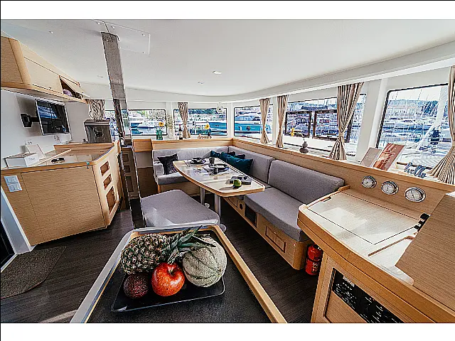 TV Air condition, Coffee maker, Cockpit cushions, Dinghy, Electric winches, Electric toilet, Ice maker, Holding tank, Inverter, Bimini, Solar Panels, Sprayhood, Teak Cockpit, Heating Chart plotter in cockpit Lazy bag, Lazy jack