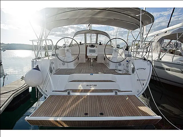 Chart plotter, Bow thruster, Chart plotter in cockpit, Autopilot Radio-CD player Cockpit speakers, Swimming platform, Refrigerator, Heating, Bimini, Sprayhood, Dinghy, Electric toilet, Solar Panels