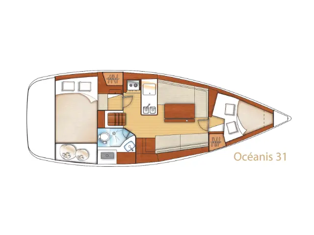 Electric toilet, Dinghy, Outboard engine, Bimini, Cockpit speakers, Refrigerator, Sprayhood Autopilot Radio-CD player Lazy jack