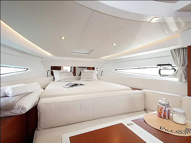 Discover the Jeanneau Leader 36, located in Marina Kaštela, just 30 minutes from Split. Perfect for families or friends, it comfortably accommodates up to 6 people. Enjoy the onboard comforts like 1 electric toilet, a fully equipped kitchen, air conditioning, heating, TV, and Wi-Fi. Relax on the deck, watch the sunset, and plan your next adventure with ease thanks to 2x260 HP Volvo engines, perfect for exploring Croatia's beautiful islands.