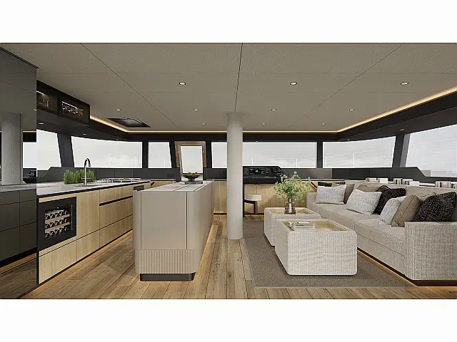Autopilot, Radar, Chart plotter, Bow thruster Cockpit speakers, Air condition, Heating, Bimini, Swimming platform, Refrigerator, Generator, Dinghy