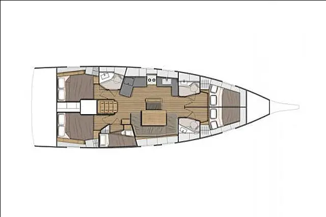 An incredibly efficient deck plan makes her wonderfully safe and easy to use. The furling mast, self-tailing jib and all the halyards and sheets brought back to a single winch at each of the helm stations, make manoeuvring simple when short-handed sailing.