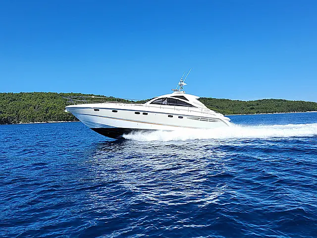 She comes with sliding hard top roof, cockpit grill, large generator and air conditioning in salon and all cabins, hydraulic pasarelle and with bow thruster + stern thruster for easy maneuvering.
