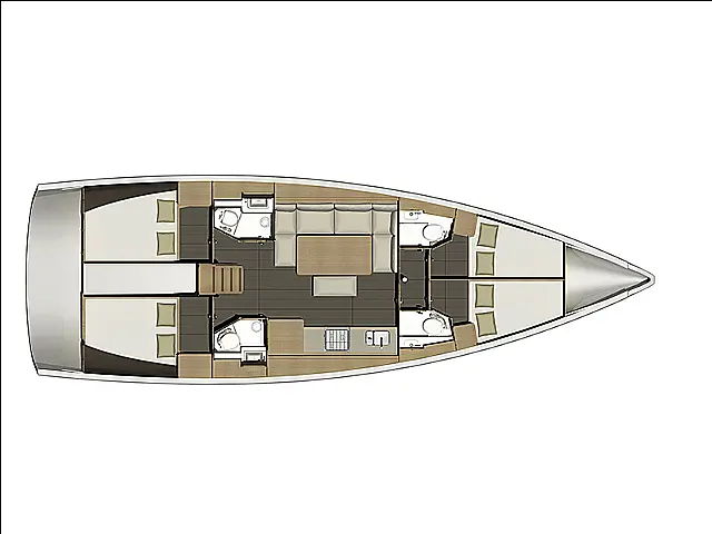 Great Dufour model, fully equipped, with 4 double cabins and 4 toilets, heating, a large cockpit with a bathing platform, and also with a fridge, grill, and sink in the cockpit. Taller mast with full batten main sail, 108% genoa, Full comfort, and high performance.