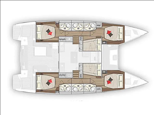 Lagoon 50 is a super versitale catamaran that can accommodate up to 14 people: 12 guests in 6 cabins and crew members.