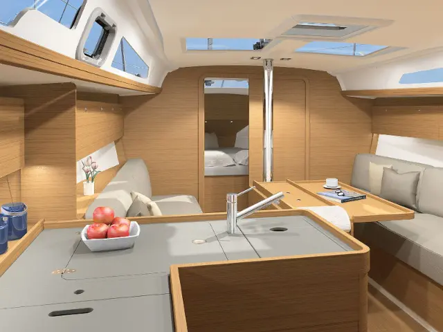 Bimini, Holding tank, Dinghy, Sprayhood, Refrigerator, Heating Radio-CD player Autopilot, Bow thruster, Chart plotter