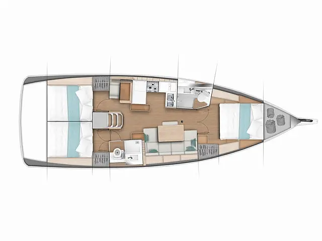 Bimini, Electric winches, Heating, Outboard engine, Sprayhood, Cockpit cushions, Solar Panels Chart plotter in cockpit, Bow thruster
