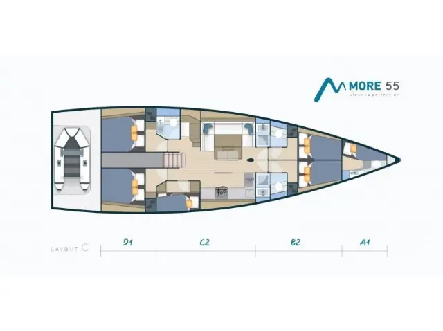 Dinghy, Cockpit cushions, Teak Cockpit, Swimming platform, Electric winches, Teak deck, Air condition, Generator, Inverter, Water maker, Coffee maker, Ice maker, Refrigerator, Sprayhood, Bimini, Heating, Wi-Fi & Internet, Cockpit speakers Autopilot, Chart plotter in cockpit Radio-CD player, Snorkeling equipment