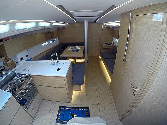 Another three-seater sofa with a chart table adds even more comfort and flexibility for guests onboard.