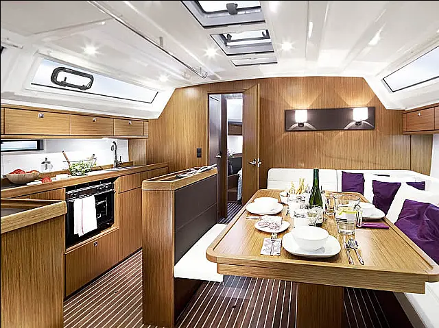 Sprayhood, Bimini, Cockpit speakers, Holding tank, Refrigerator, Cockpit cushions, Electric toilet Chart plotter, Bow thruster, Autopilot Radio-CD player