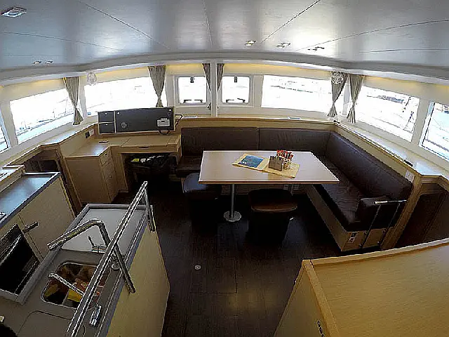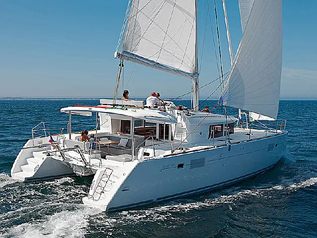 With 4 large double cabins + 2 bow cabins + 2 salon berths, 4 toilets, 2 x bow thruster, large generator and air conditioning in all cabins, Highfield tender with 20 HP, SUP free of charge, probably the best charter catamaran arround!