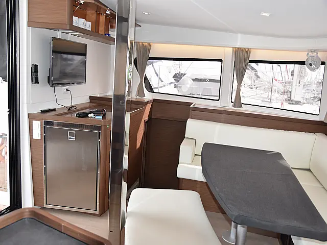 Lazy bag TV Cockpit speakers, Bimini, Swimming platform, Dinghy, Outboard engine, Coffee maker, Water maker, Solar Panels, Generator, Inverter, Air condition, Electric toilet, Cockpit cushions, Hydraulic gangway Autopilot, Chart plotter in cockpit