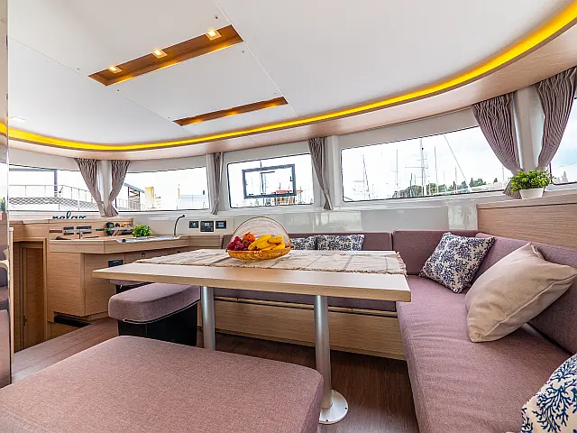 The Lagoon 46 reinforces the fundamentals that have made LAGOON brand a staple of the catamaran sailing industry, a freeing, gentle lifestyle full of innovation. It brings the belief of living a life at sea where comfort and elegance don't have to be compromised. The 46's design, while comparable to its larger sisters, is still in a league of her own. It combines modular front and aft cockpit and has a fully equipped cooking area at the back, and yet still enough space in the salon to fully express itself and make this boat a home away from home. With its double access, the Flybridge is a space dedicated to maximum relaxation and comfort. The center helm station offers protection from the elements and exceptional visibility. The cabins aboard have an impressive amount of space available, especailly the front cabin where the bed is as comfortable and roomy as the aft cabins. The amazing quality of life aboard the Lagoon 46 catamaran is guaranteed to exceed expectations. The finishes and lighting make you feel at home. With a great connection between the front cockpit and salon, there's seamless transition to indoor and outdoor living. The Lagoon 46 catamaran proves her seaworthiness with her exceptional performance under sail. Using similar new, innovative designs VPLP has applied to the 46's sisters, this model can hold her own and personalizes her identity in the catamaran world through her performance on the water. Her mast has been repositioned, moving it back has provided a very high aspect ratio. A shorter boom and a self-tacking jib make it easily manageable. Feel the sea breeze and witness her true performance for yourself the under the 46's sails.