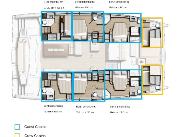 Dinghy, Cockpit cushions, Teak Cockpit, Barbecue grill in cockpit, Electric winches, Air condition, Generator, Inverter, Water maker, Outboard engine, Coffee maker, Dishwasher, Ice maker, Refrigerator, Bimini, Electric toilet, Wi-Fi & Internet, Cockpit speakers, Solar Panels Autopilot, Radar Gennaker, Lazy jack Snorkeling equipment, Stand up paddle, TV, Radio-CD player