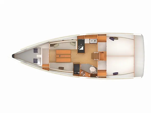Autopilot, Chart plotter in cockpit Snorkeling equipment Dinghy, Sprayhood, Cockpit cushions, Refrigerator, Holding tank, Solar Panels
