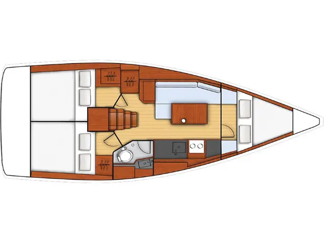 Dinghy, Outboard engine, Teak Cockpit, Refrigerator, Cockpit cushions, Sprayhood, Heating, Holding tank, Electric toilet, Wi-Fi & Internet Chart plotter Snorkeling equipment, Radio-CD player Railing net Gennaker