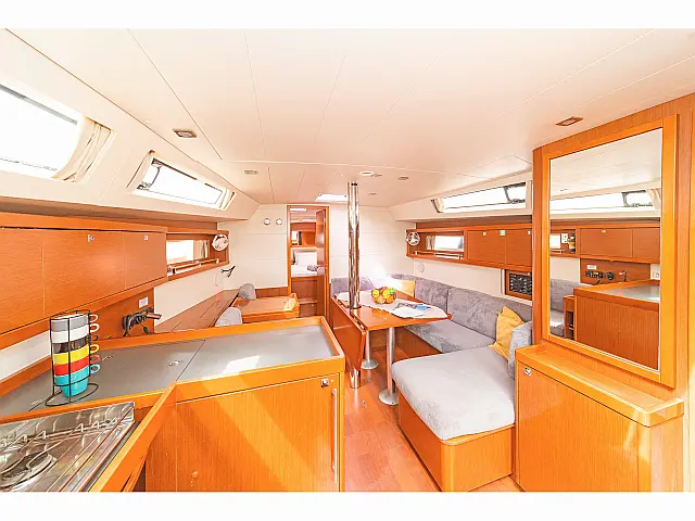 Cockpit cushions, Sprayhood, Bimini, Electric toilet, Refrigerator, Cockpit speakers, Solar Panels Chart plotter in cockpit, Bow thruster, Chart plotter, Autopilot Snorkeling equipment