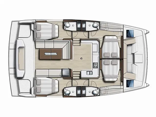 Electric winches, Barbecue grill in cockpit, Wi-Fi & Internet, Cockpit speakers, Solar Panels, Inverter, Generator, Outboard engine, Dinghy, Electric toilet, Air condition, Bimini, Cockpit cushions Autopilot, Bow thruster