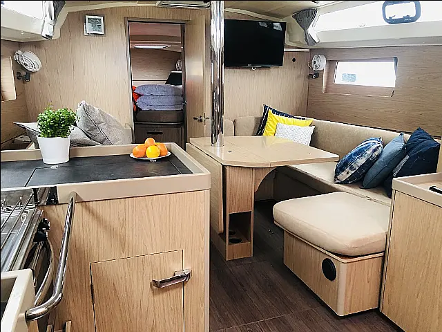 Bow thruster, Autopilot, Chart plotter Heating, Dinghy, Sprayhood, Bimini, Cockpit speakers, Cockpit cushions TV, Radio-CD player Lazy bag