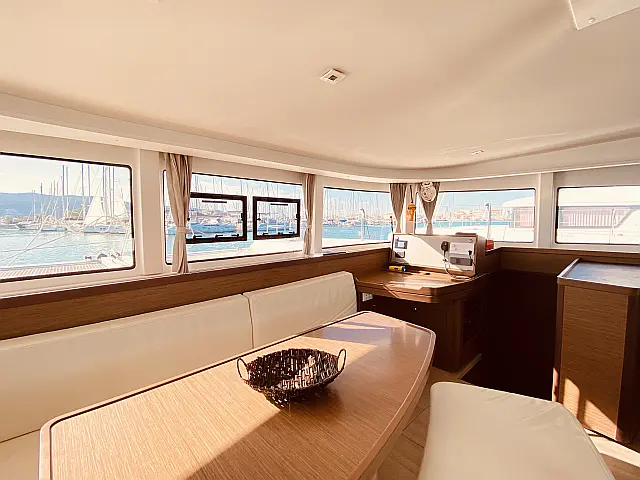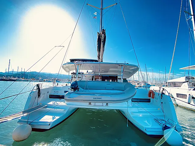 Lazy bag, Lazy jack Autopilot Radio-CD player, Snorkeling equipment Cockpit speakers, Air condition, Heating, Refrigerator, Generator, Dinghy, Electric toilet