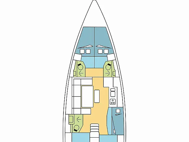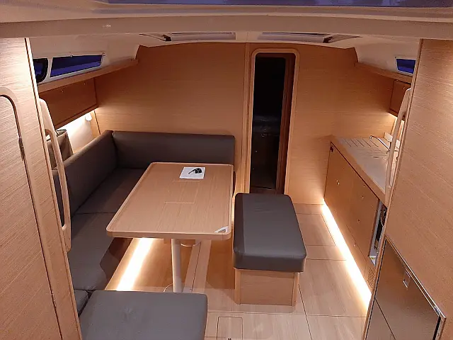 Bow thruster, Autopilot Lazy jack, Lazy bag Electric winches, Dinghy, Heating, Sprayhood, Bimini, Refrigerator