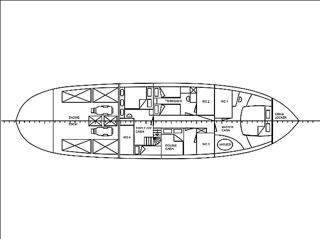 | Cabins: | 4 (1 master king double, 2 queen double, 1 twin) |