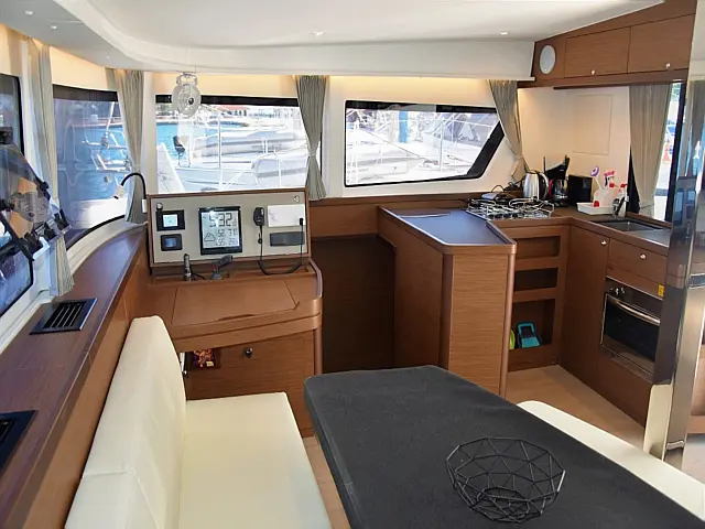 Lazy bag TV Cockpit speakers, Bimini, Swimming platform, Dinghy, Outboard engine, Coffee maker, Water maker, Solar Panels, Generator, Inverter, Air condition, Electric toilet, Cockpit cushions, Hydraulic gangway Autopilot, Chart plotter in cockpit