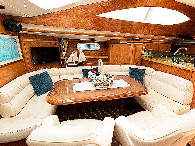 Teak Cockpit, Solar Panels, Sprayhood, Bimini, Cockpit speakers, Teak deck, Holding tank, Dinghy, Outboard engine, Refrigerator, Inverter Bow thruster, Chart plotter, Autopilot TV