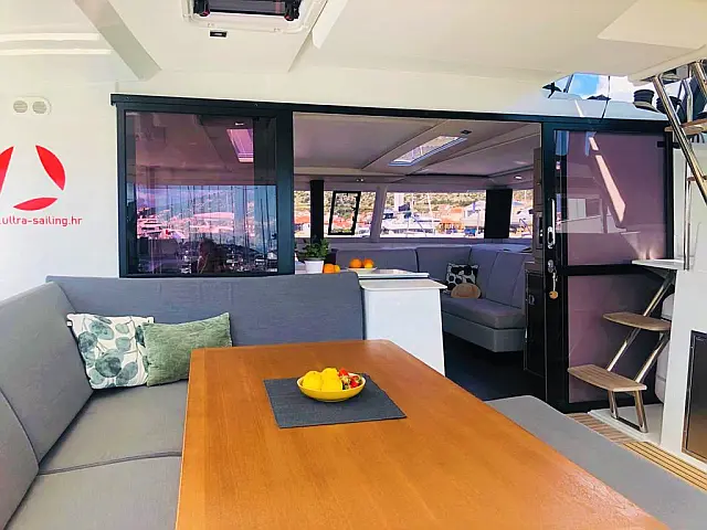 Dishwasher, Cockpit cushions, Generator, Heating, Water maker, Coffee maker, Dinghy, Electric winches, Inverter, Electric toilet, Bimini, Cockpit speakers, Teak Cockpit, Refrigerator, Barbecue grill in cockpit Autopilot, Chart plotter, Radar Radio-CD player, TV Lazy bag, Lazy jack