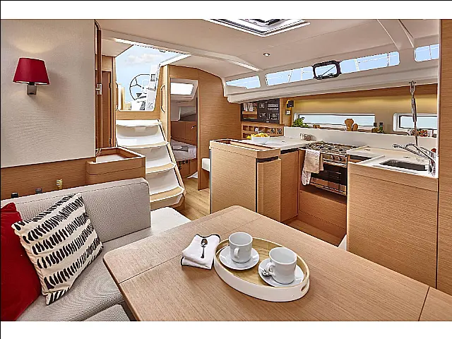 Dinghy, Outboard engine, Bimini, Cockpit cushions, Sprayhood, Refrigerator Lazy jack Snorkeling equipment Chart plotter, Bow thruster, Autopilot