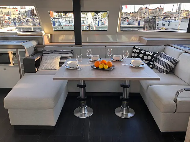 Cockpit cushions, Generator, Heating, Coffee maker, Dinghy, Electric winches, Inverter, Bimini, Cockpit speakers, Teak Cockpit, Refrigerator, Barbecue grill in cockpit TV, Radio-CD player Autopilot, Chart plotter Lazy bag, Lazy jack