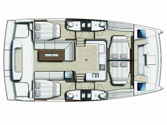 Chart plotter, Autopilot Generator, Water maker, Electric winches, Inverter, Air condition, Cockpit speakers, Cockpit cushions, Electric toilet, Dinghy, Refrigerator