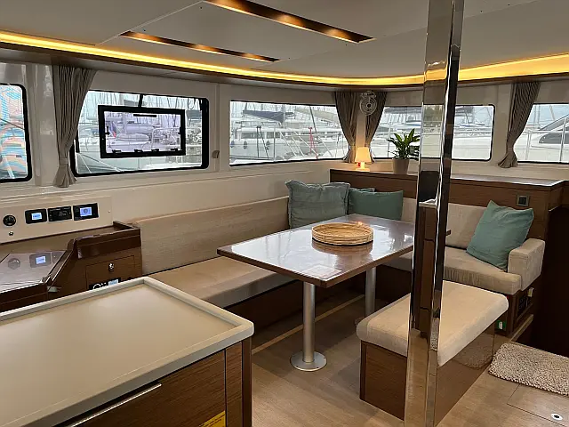 Refrigerator, Air condition, Dinghy, Electric toilet, Electric winches, Coffee maker, Generator, Hydraulic gangway, Outboard engine, Solar Panels, Water maker Chart plotter in cockpit TV