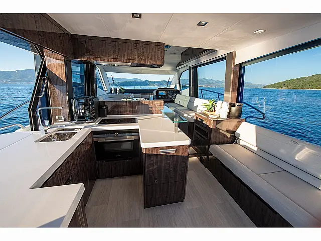 Teak Cockpit, Hydraulic gangway, Air condition, Generator, Inverter, Heating, Dinghy, Coffee maker, Dishwasher, Ice maker, Refrigerator, Wi-Fi & Internet, Cockpit speakers Autopilot, Radar Radio-CD player, TV