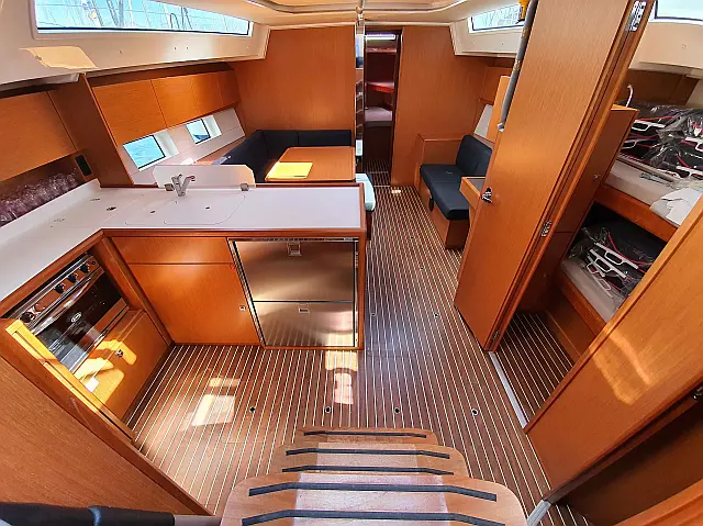 Sprayhood, Bimini, Cockpit cushions, Solar Panels, Swimming platform, Dinghy, Refrigerator, Outboard engine, Electric toilet Bow thruster, Autopilot, Chart plotter TV