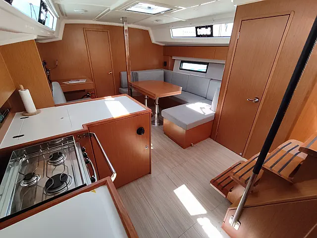 Lazy jack, Lazy bag DVD player, Radio-CD player Swimming platform, Refrigerator, Inverter, Dinghy, Bimini, Sprayhood, Cockpit speakers, Teak Cockpit, Cockpit cushions, Holding tank, Solar Panels, Coffee maker Chart plotter in cockpit, Autopilot, Bow thruster
